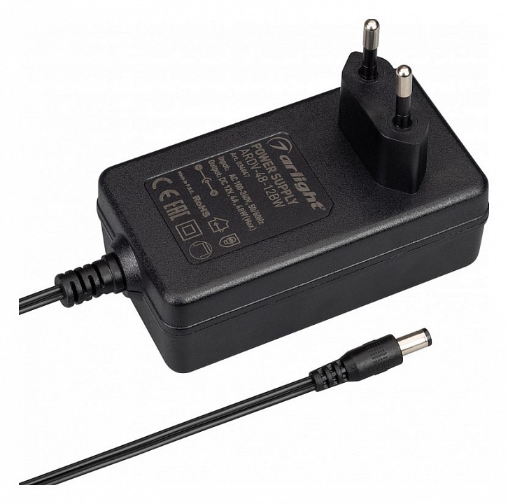 длина кабеля 1.5 м, коннектор 5.5x2.1x10мм. Размер 94x52x33 мм (размер без вилки). Гарантия 3 года.