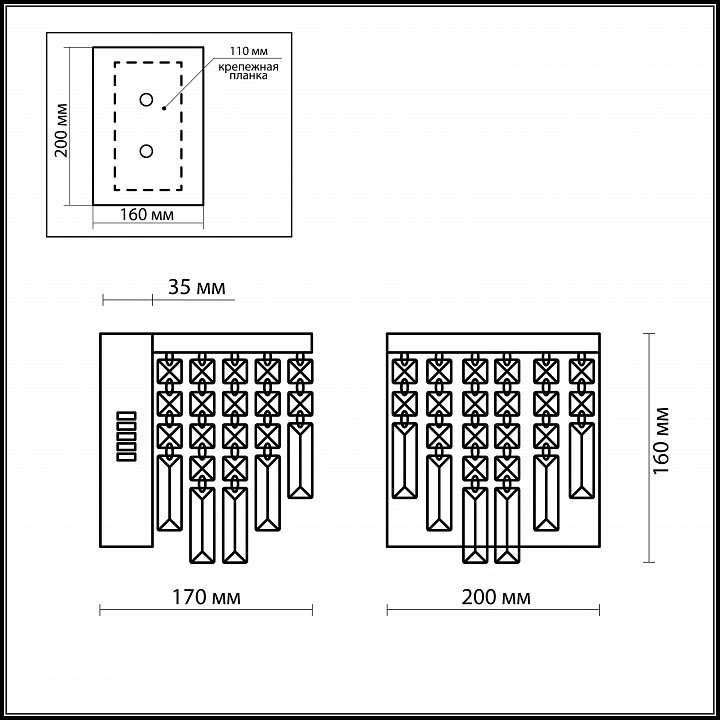 Материал плафонов и подвесок: