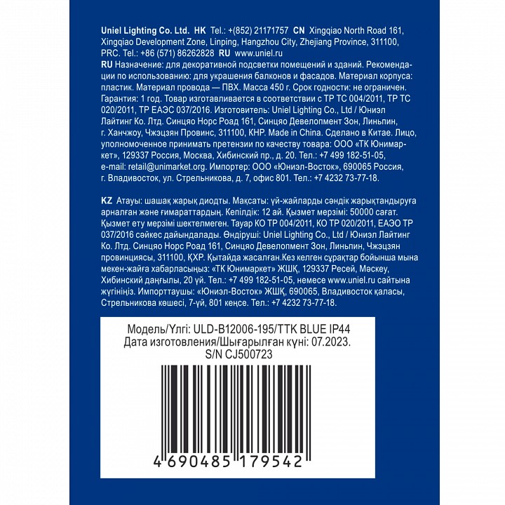 Бахрома световая Uniel ULD-B12006-195/TTK UL-00010882