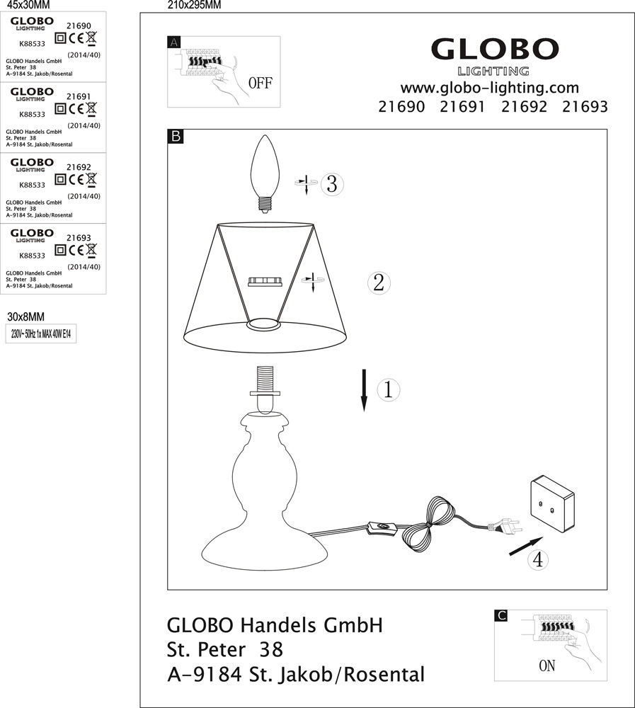 Настольная лампа декоративная Globo Metalic 21690