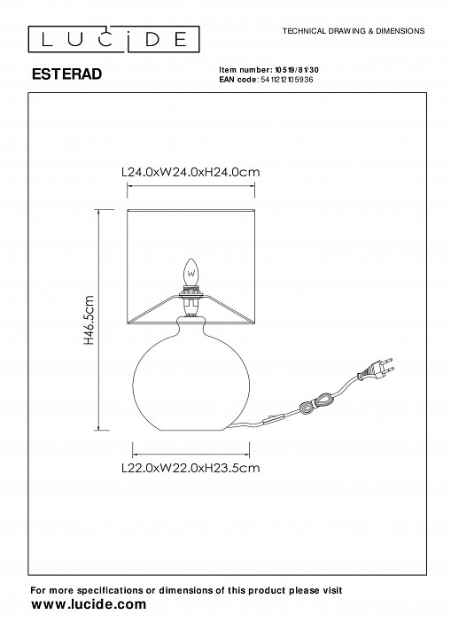 Настольная лампа декоративная Lucide Esterad 10519/81/30