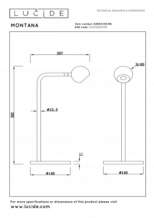Настольная лампа декоративная Lucide Montana 68500/05/96