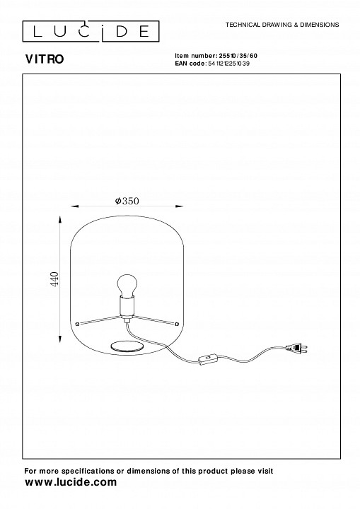Настольная лампа декоративная Lucide Vitro 25510/35/60