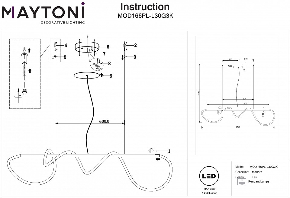 Подвесной светильник Maytoni Tau MOD166PL-L30G3K