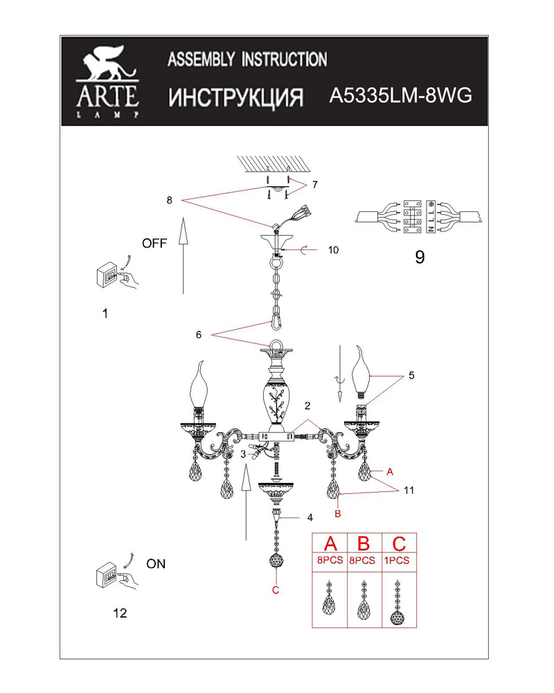 Подвесная люстра Arte Lamp Dubai A5335LM-8WG