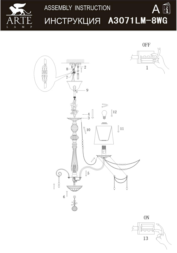 Подвесная люстра Arte Lamp Sierra A3071LM-8WG