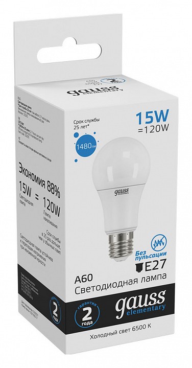 Лампа светодиодная Gauss 232 E27 15Вт 6500K 23235