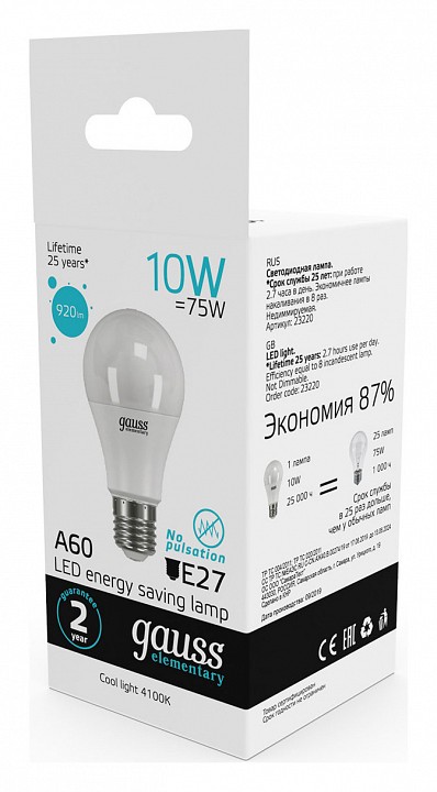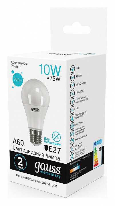 Лампа светодиодная Gauss E27 10Вт 4100K 23220