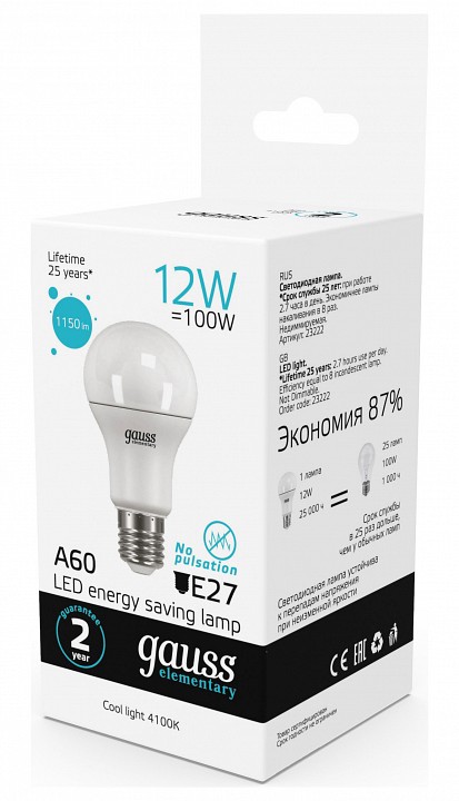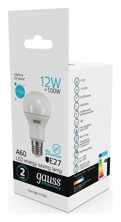 Лампа светодиодная Gauss E27 12Вт 4100K 23222