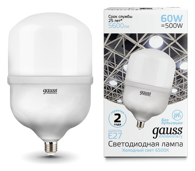 Лампа светодиодная Gauss Elementary LED T160 E27 60Вт 6500K 63236