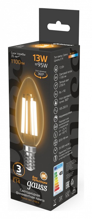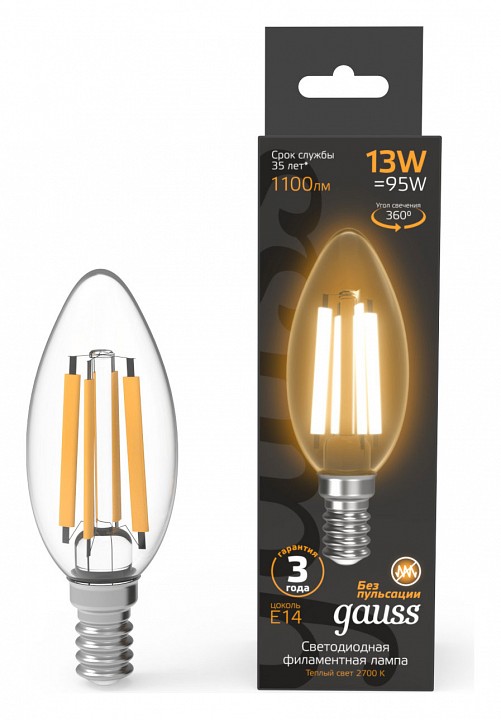 Лампа светодиодная Gauss Filament E14 13Вт 2700K 103801113