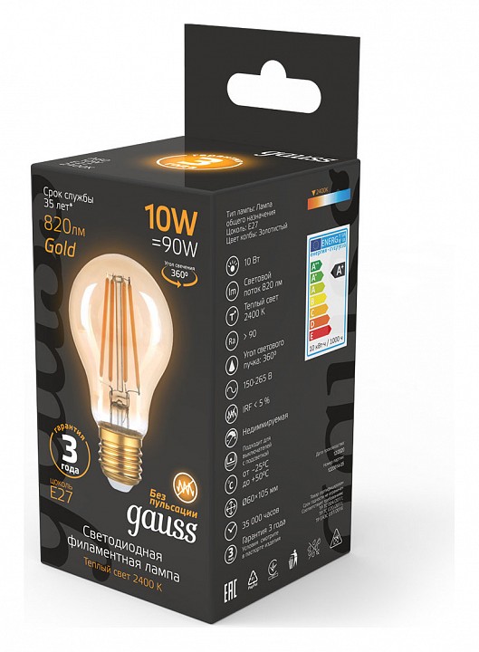 Лампа светодиодная Gauss Filament E27 10Вт 2400K 102802010