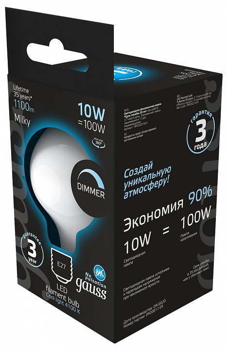 Лампа светодиодная Gauss Filament E27 10Вт 4100K 189202210-D