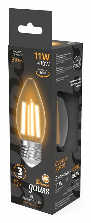 Лампа светодиодная Gauss Filament E27 11Вт 2700K 103802111