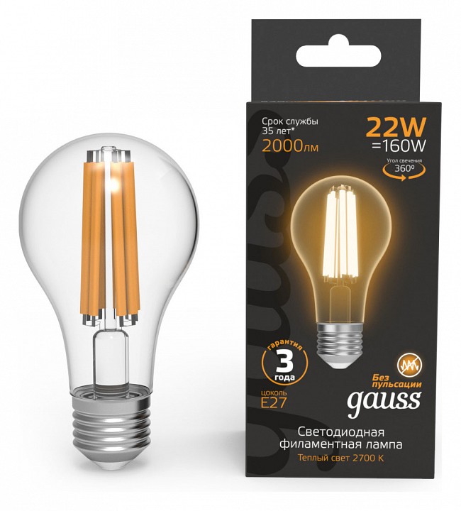 Лампа светодиодная Gauss Filament E27 22Вт 2700K 102902122