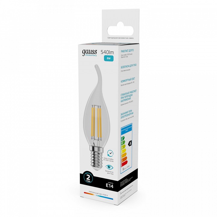 Лампа светодиодная Gauss Filament Elementary E14 8Вт 4100K 42128