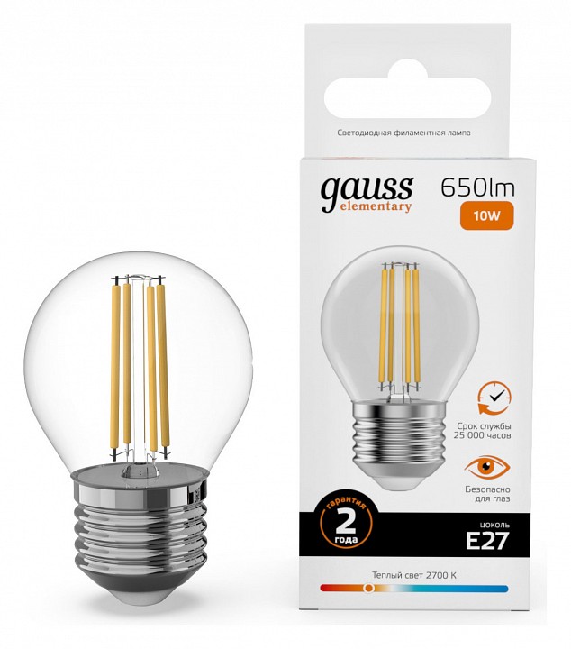 Лампа светодиодная Gauss Filament Elementary E27 10Вт 2700K 52210