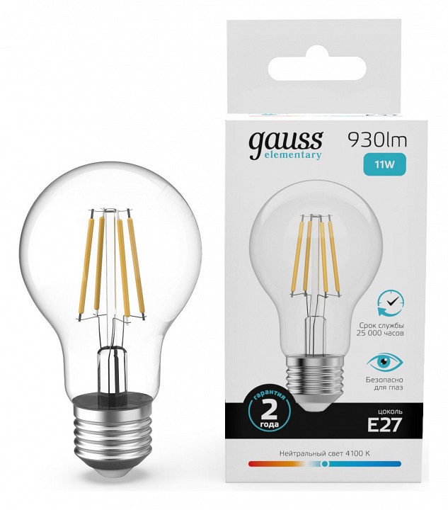 Лампа светодиодная Gauss Filament Elementary E27 11Вт 4100K 22221
