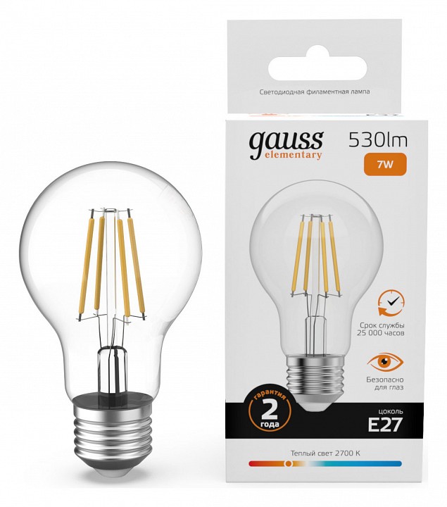 Лампа светодиодная Gauss Filament Elementary E27 7Вт 2700K 22217