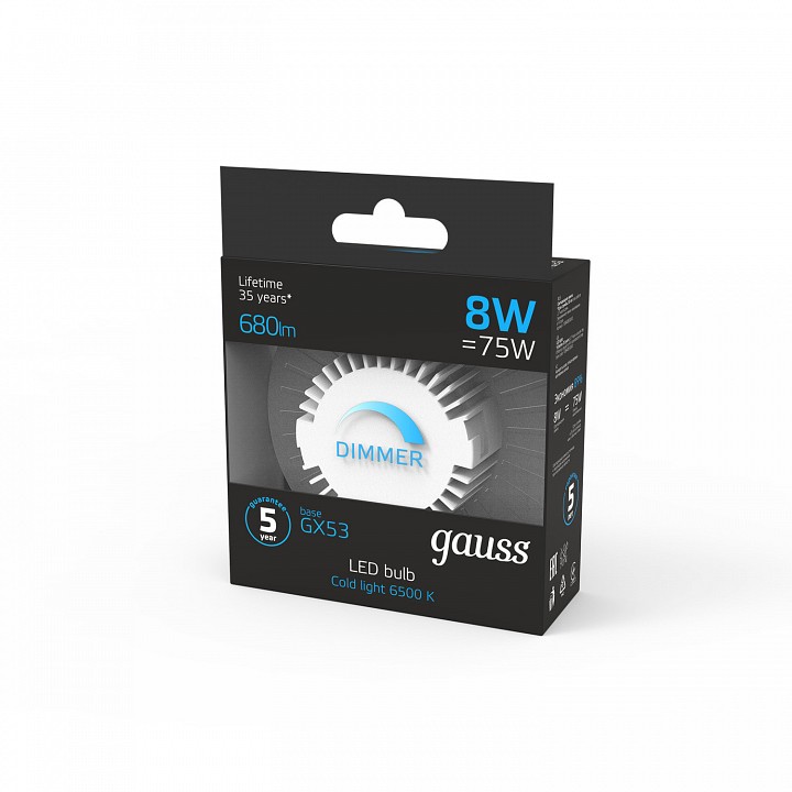 Лампа светодиодная Gauss GX53 8Вт 6500K 108408308-D