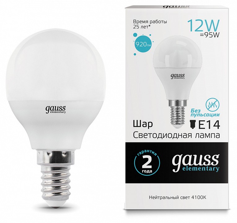 Лампа светодиодная Gauss LED Elementary E14 12Вт 4100K 53122