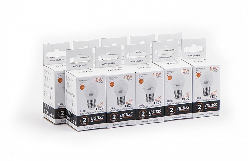 Лампа светодиодная Gauss LED Elementary Globe E27 10Вт 3000K 53210
