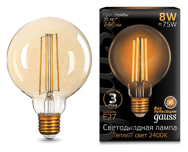 Лампа светодиодная Gauss Led Filament G95 E27 8Вт 2400K 105802008