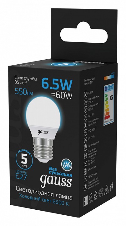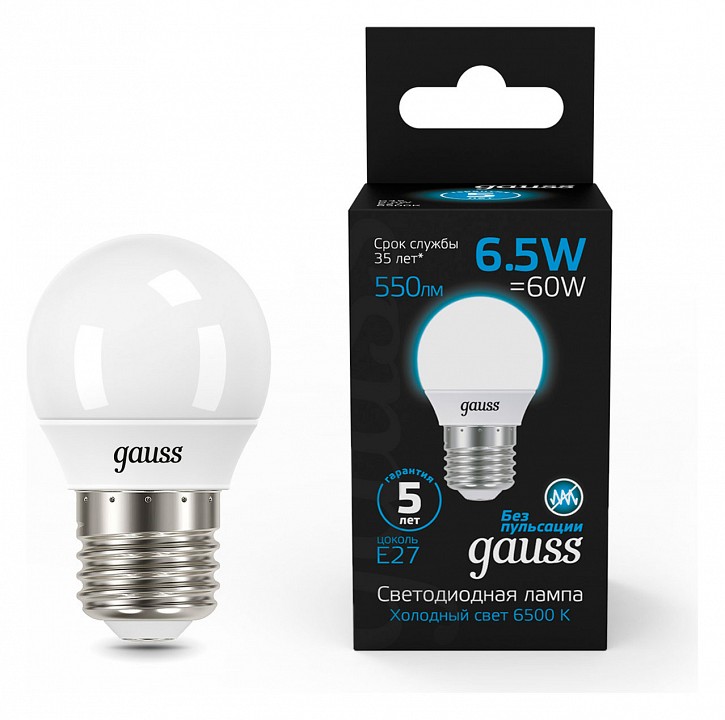 Лампа светодиодная Gauss Шар E27 6.5Вт 6500K 105102307