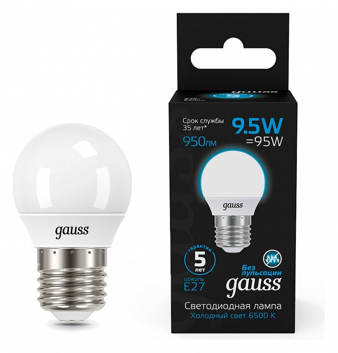 Лампа светодиодная Gauss Шар E27 9.5Вт 6500K 105102310