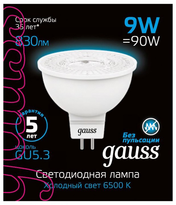 Лампа светодиодная Gauss SMD GU5.3 9Вт 6500K 101505309
