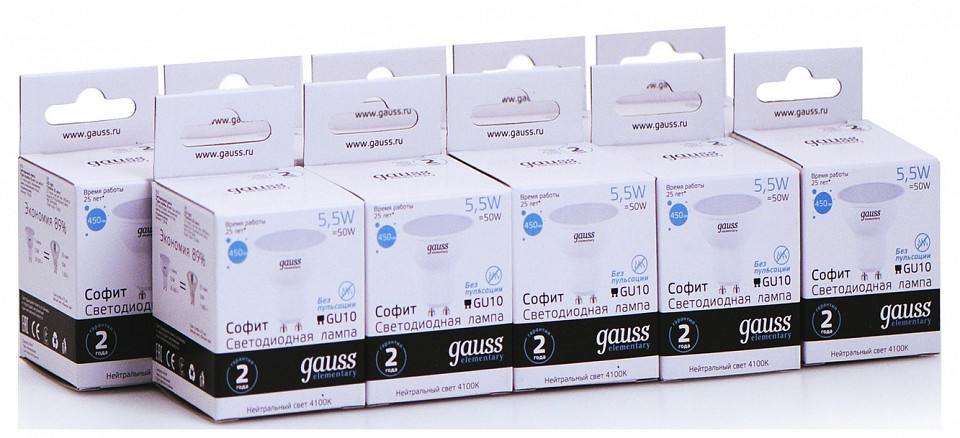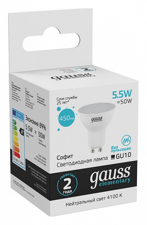 Лампа светодиодная Gauss Софит GU10 5.5Вт 4100K 13626