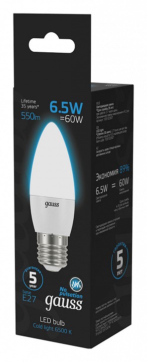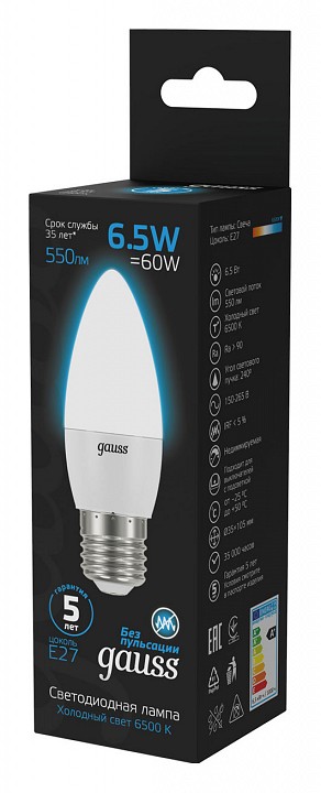 Лампа светодиодная Gauss Свеча E27 6.5Вт 6500K 103102307