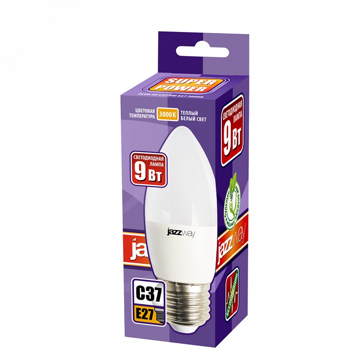 Лампа светодиодная Jazzway E27 9Вт 3000K PLED-SP C37 9w E27 3000K