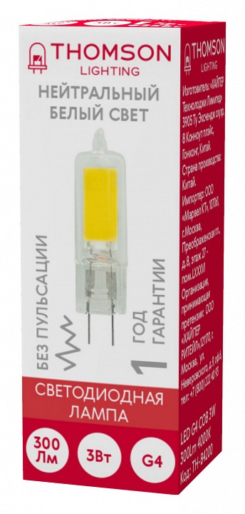 Лампа светодиодная Thomson G4 COB G4 3Вт 4000K TH-B4200