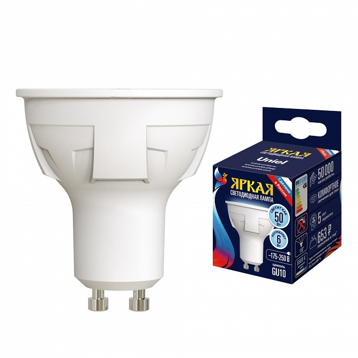 Лампа светодиодная Uniel яркая GU10 6Вт 6500K UL-00011020