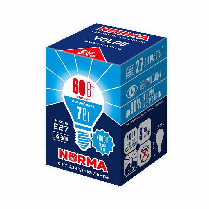 Лампа светодиодная Volpe E27 7Вт 4000K UL-00003822