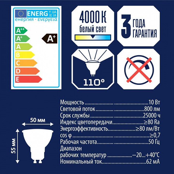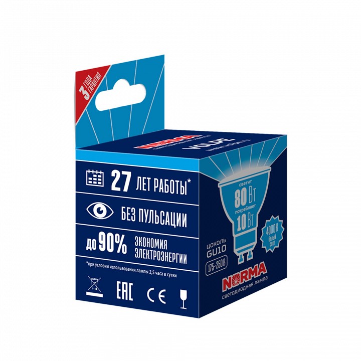 Лампа светодиодная Volpe GU10 10Вт 4000K UL-00003840