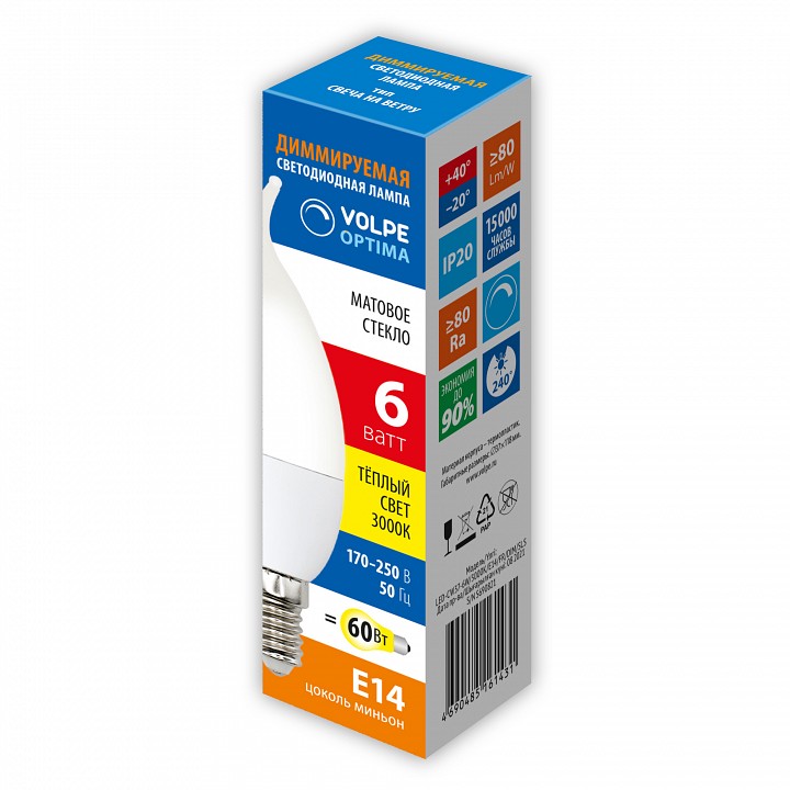 Лампа светодиодная Volpe OPTIMA DIM E14 6Вт 3000K UL-00009223
