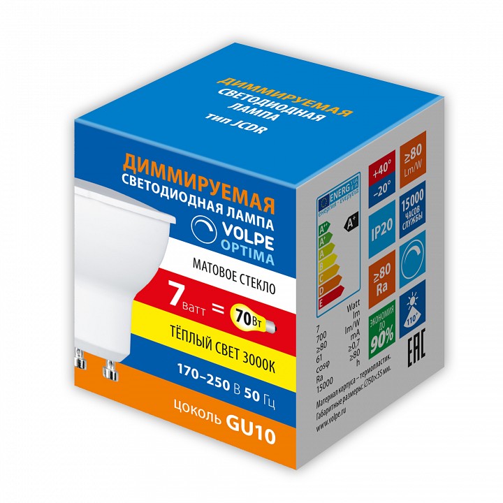 Лампа светодиодная Volpe OPTIMA DIM GU10 7Вт 3000K UL-00009233