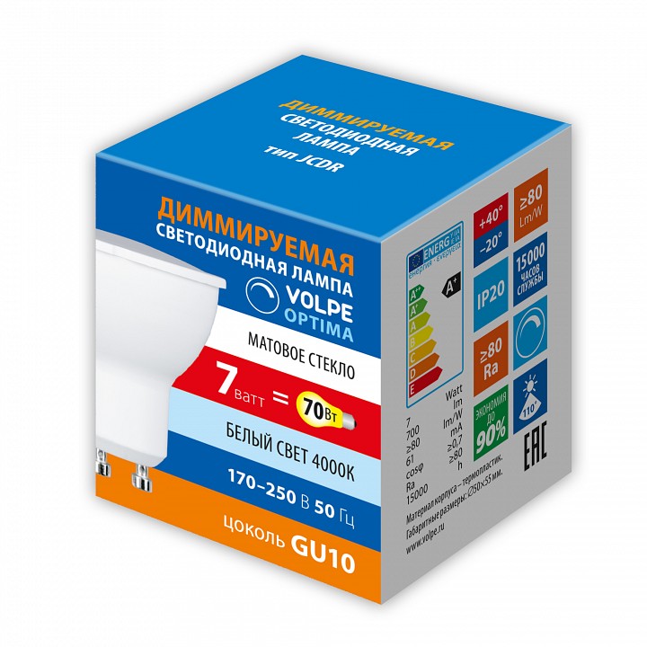 Лампа светодиодная Volpe OPTIMA DIM GU10 7Вт 4000K UL-00009234