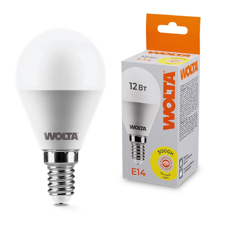Лампа светодиодная Wolta E14 12Вт 3000K 25Y45GL12E14
