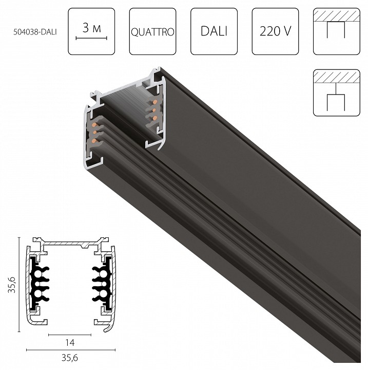 Трек накладной Lightstar Quattro/DALI 504038-DALI