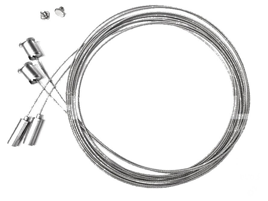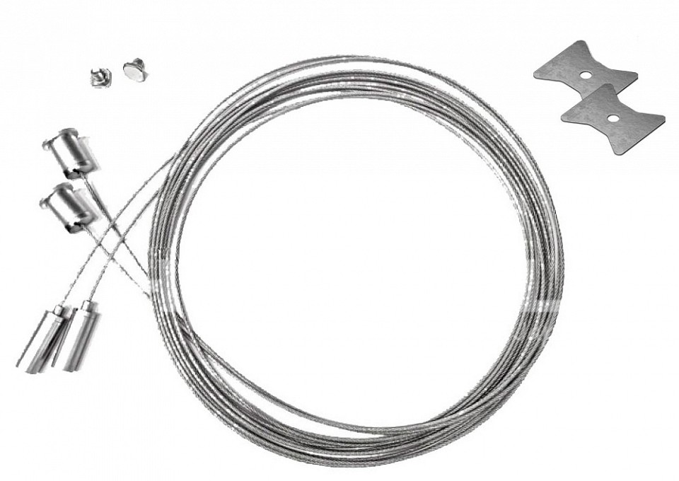 2 стальных тросика по 2м с держателями, 2 пластины для крепления профиля
