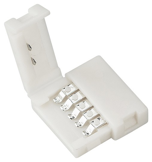 Одиночный пластиковый коннектор без провода для соединения двух отрезков открытых светодиодных лент RGB+W (SMD 5060) шириной 12 мм. Максимальный допустимый ток 3 А,