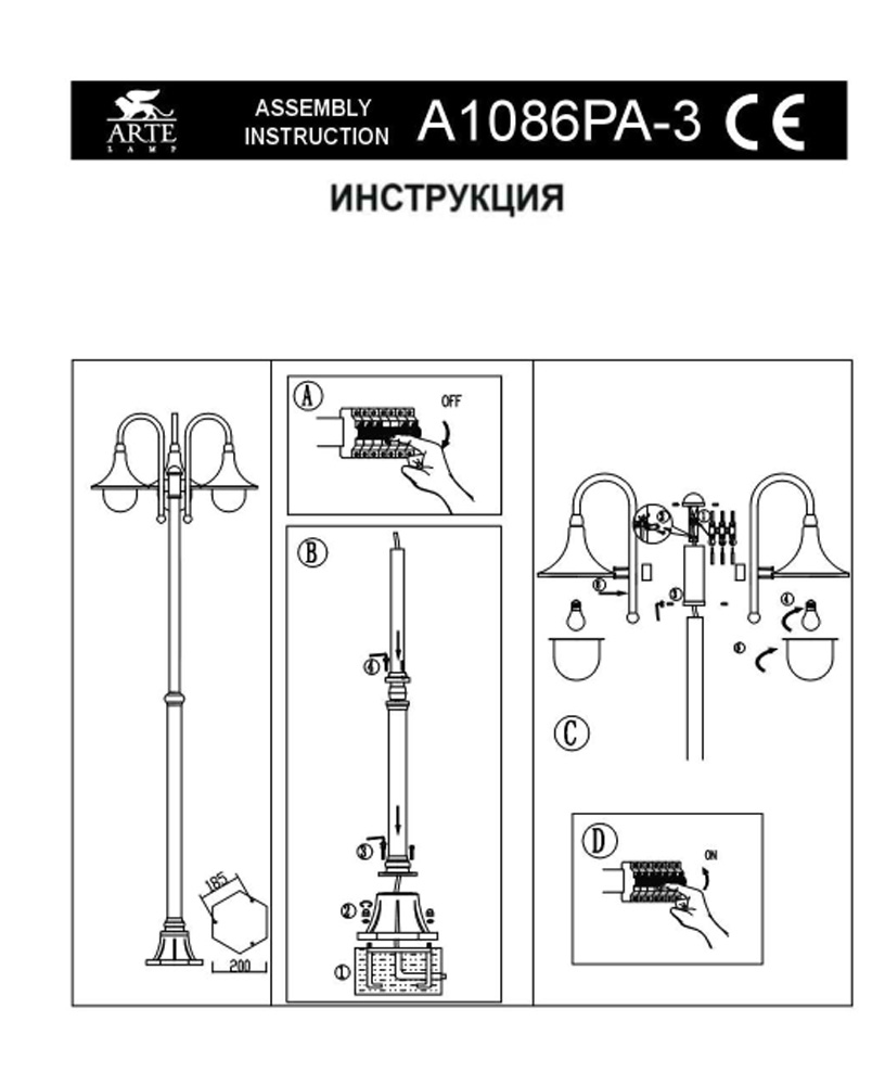 Фонарный столб Arte Lamp Malaga A1086PA-3BG