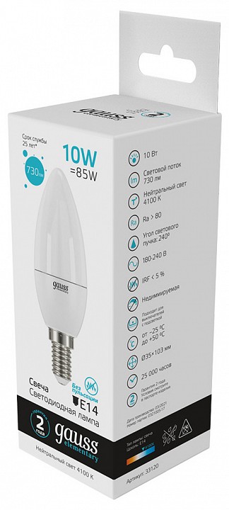 Лампа светодиодная Gauss 331 E14 10Вт 4100K 33120
