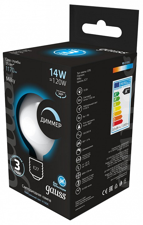 Лампа светодиодная Gauss Filament E27 14Вт 4100K 153202214-D