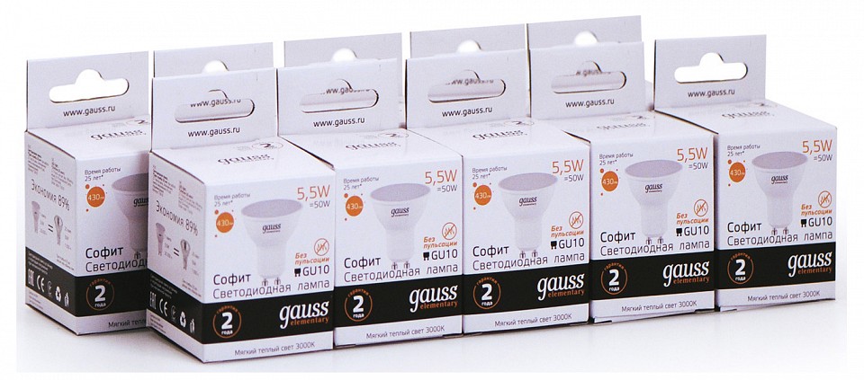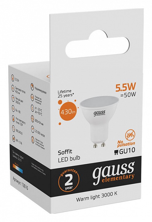 Лампа светодиодная Gauss Софит GU10 5.5Вт 3000K 13616