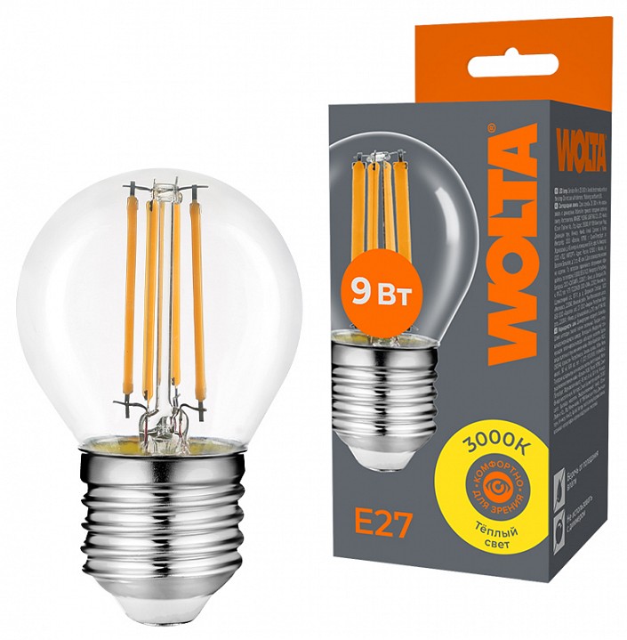 Лампа светодиодная Wolta E27 9Вт 3000K WF-G45-9W3KE27