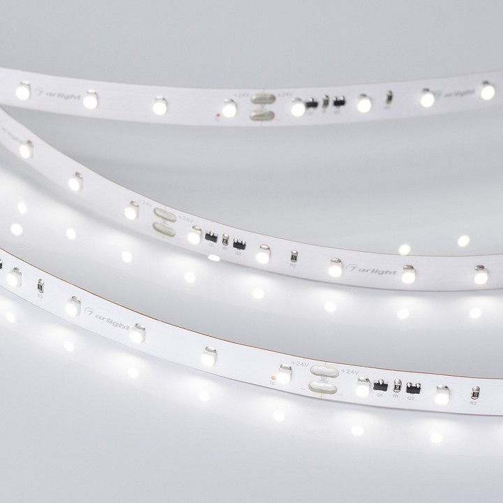 Стабилизированная лента длиной 20 метров и шириной 10 мм. Стабилизаторы тока обеспечивают равномерное свечение по всей длине ленты даже при подключении только с одной стороны. Светодиоды SMD 3528 (60 шт/м) дневного белого цвета свечения (4000–4500 K) с индексом цветопередачи CRI>80. Мощность 4.8 Вт/м,